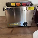 Eles oferecem um pequeno-almoço bufê diário. Os hóspedes são convidados para o restaurante Gh Backhendlstation para apreciar os pratos deliciosos.